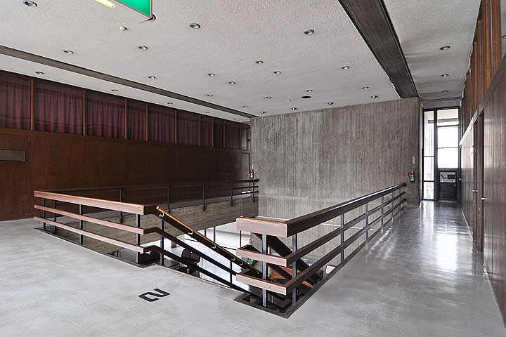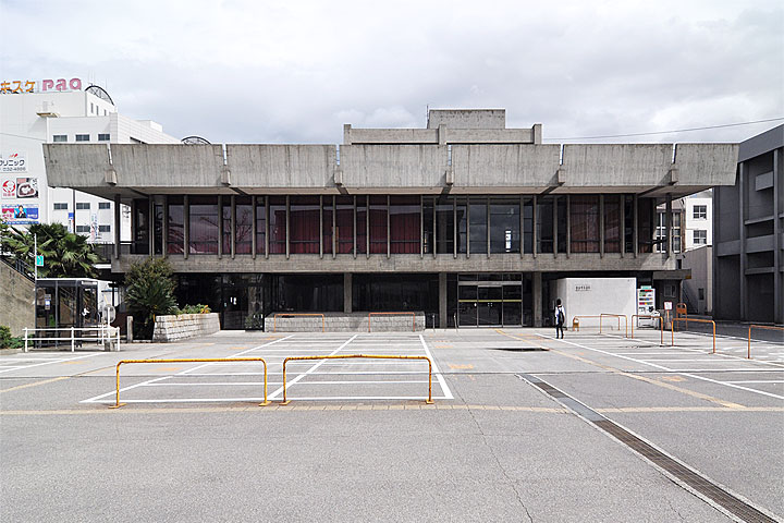 今治市の中心部に建つ公民館施設。市庁舎・公会堂と共に都市広場を形成しているが、純粋に建築作品としては本作が最も優れているように思える。ルーバーを含めた窓のおさまりは実にシャープで、半世紀を経た現代でも見る者を驚かせるインパクトがある。内部の建具もおそらくオリジナルかそれに近い年代のものだろう。