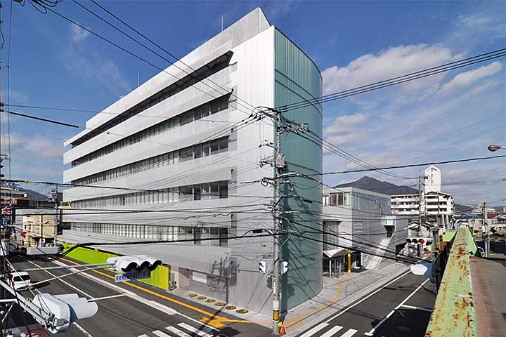 広島市の北部市街地の福祉拠点。福祉窓口、保健センター、児童館の合築である。著名建築家を起用し良質な公共施設を整備する広島市のプロジェクト「ひろしま2045 平和と創造のまち(以下、P&C事業)」として建設された。P&C事業では「矢野南小」「西消防署」「基町高校」「中工場」と、全国区の建築家が続いていたが、ようやく地元広島のプロフェッサーアーキテクトである村上徹の作品が実現した(元々はこれがP&C事業の第1号案件だったようだ)。