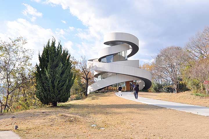 この構造から「2つのリボンが絡み合いながら支え合い、つながる頂点からは瀬戸内海の見事な視界が開ける」…というウェディングっぽいストーリー性が建築に与えられ、構造・空間・フレーズが見事に一致している。二重らせんを新郎新婦が分かれて上がっていき頂点で出会うといったセレモニーも行われているという。