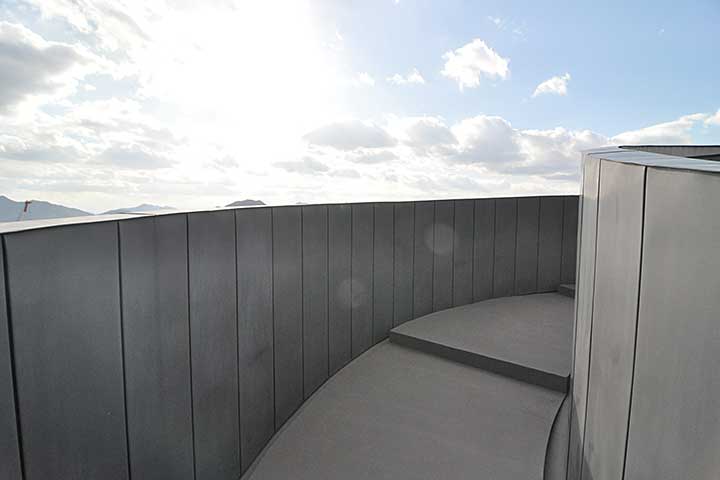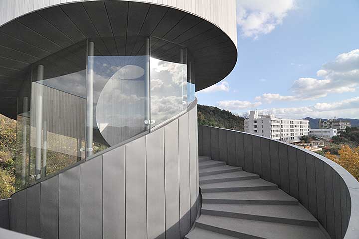 構造のアイディアが生まれただけでは建築作品にはならず、設計思想がシンプルに表現されるようディテールを突き詰め、なおかつ実際に施工しなければならない。本作の場合、壁や屋根という概念を超えて、らせん通路だけで建築が構成されているため、三次元的に複雑な形状の開口部にガラスを合わせていくなど、かなりの苦労があったようだ。かくして、誰もがアッと驚く建築ができあがった。