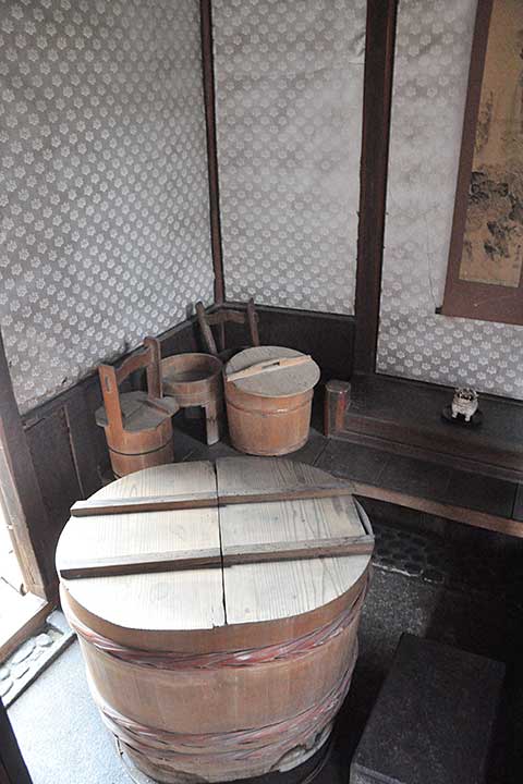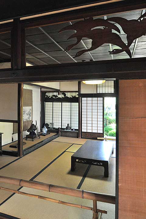 座敷棟の奥には庭園と浴室がある。家人の普段使いのものとは考えにくく、幕府高官や大名の滞在を想定して建てたものだろう。さらに非公開の主屋部分も見学したが、こちらは後世にかなり改造されているため文化財ではないものの、旧家ならではの趣を感じさせる空間だった(写真#9)。