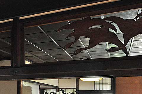 また、古建築鑑賞のポイントの一つに装飾があるが、中でも施主に関わるマークを探すのが定番だ。千葉家の家紋「月星紋」を探してみると、瓦を始め各所に見つけることができる。また、付書院や釘隠しにはウサギがいる。ウサギは月の世界で不老不死の霊薬をつき続ける月の精とされる伝承があり、ひょっとしたら月星紋とリンクさせているのかもしれない。