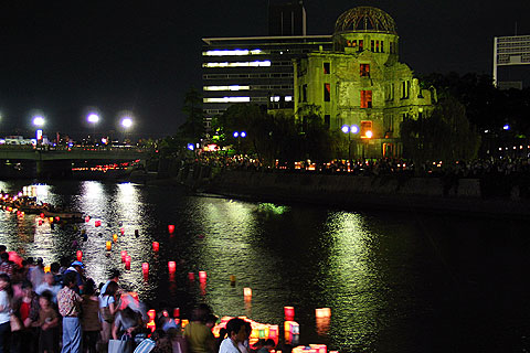 #15: 8月6日の夜には灯籠流しが行われ、平和公園の親水護岸が真価を発揮する。被爆者の高齢化に伴い、イベントの目的も慰霊からメッセージ発信に変化しつつある。