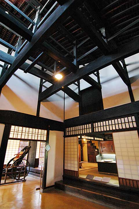 かつて醤油の醸造を営んでいた豪商の邸宅を活用した資料館。外観は、軒を支える持送り板が意匠上の特徴になっている。内部は、庭園を雁行配置で囲む座敷や土間の梁組など、見どころが多い。