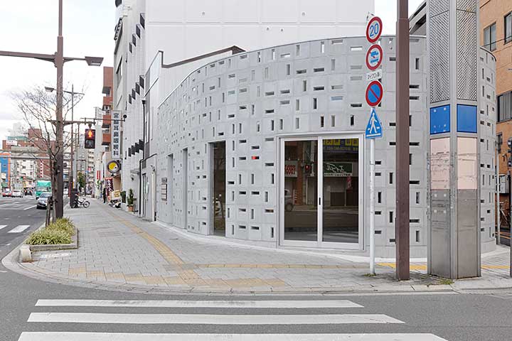 有名なご当地ハンバーガー店の建て替え。主要構造は鉄骨だが、外壁は特注されたコンクリートブロックで構成されている。