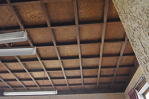 二階中央の部屋は多目的室とあるが、内装もドイツ壁に格天井となっており明らかにグレードが高いので、校長室だったのかもしれない(写真#8)。また、図書室には和室(床の間付き)が併設されているが、これもオリジナルだろうか?(写真#9)