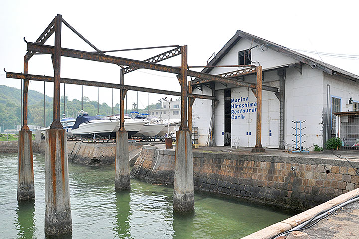 広島湾に浮かぶ金輪島の対岸、鯛尾地区にあるマリーナ。現在でも多数のヨットやボートが利用している現役の施設なのだが、よく見ると明らかに戦前モノの石積み護岸や構造物が各所に残っている。