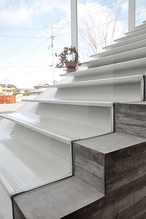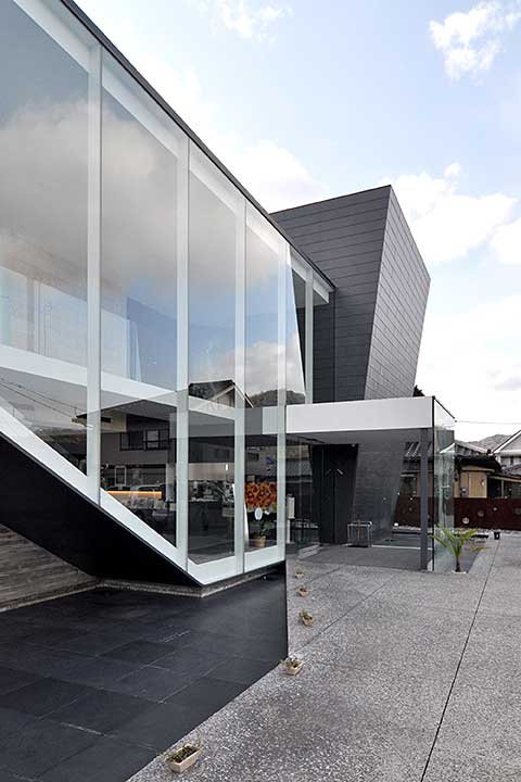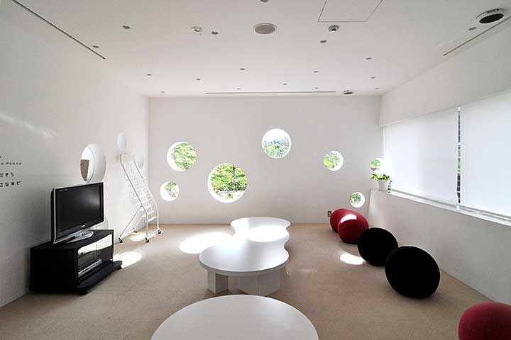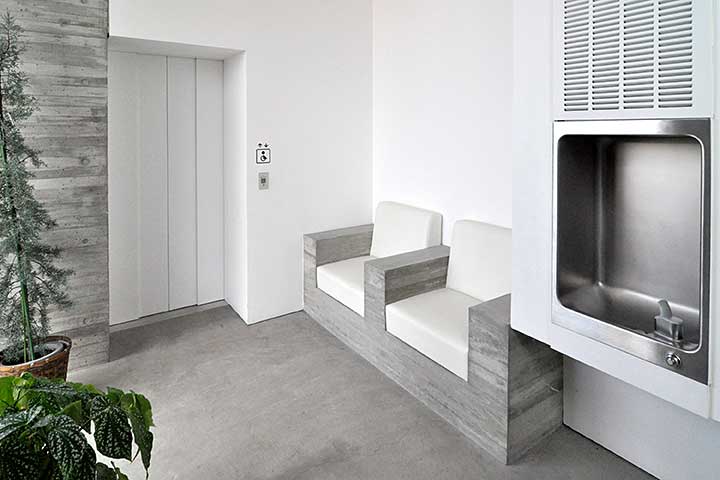 福山どころか広島県内を見回しても、公共的な施設でこれほどまで作家性をつきつめた”建築っぽい”建築はめったにない。階段の造形(写真#9)、”子供の部屋”の丸い引き戸(写真#11)、コールテン鋼の風合いを活かした塀(写真#12)…。個人的にはエレベーター横の作り付けソファにグッときた(写真#7)。水盤から水が抜かれているのはちょっと残念だが、大きく印象を損なうほどではない(写真#2)。