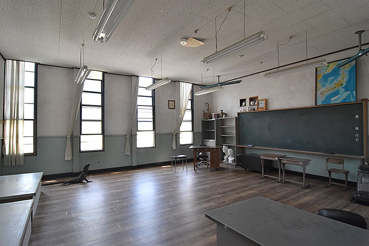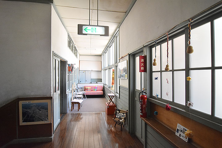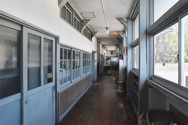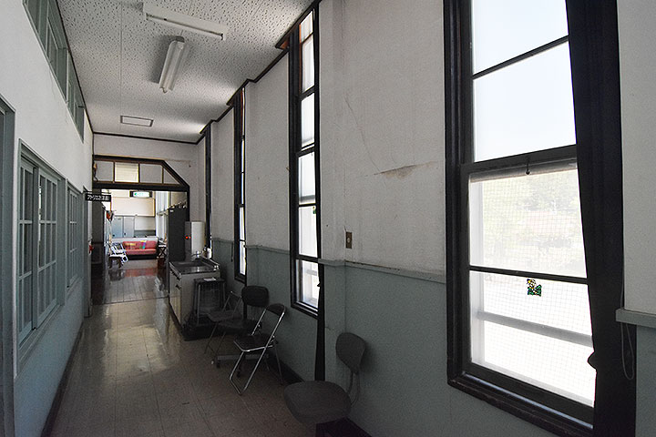二階の講堂部分は教室に改造されているが、その他は建設時の姿をほぼ留めているといい(*2)、保護者が炊き出しをしたという給食室や、商店がないため学用品を置いていたという売店(写真#6手前)など、当時の田舎の小学校の様相を伝えるものがよく残されている。