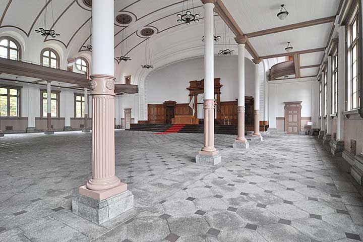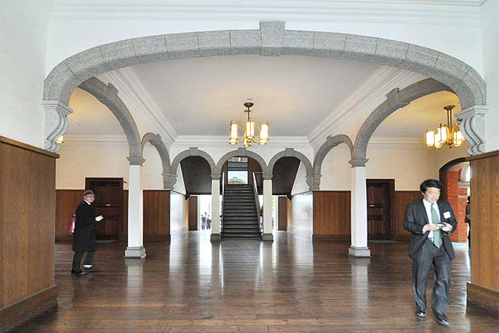 [注意] ここでは通常非公開建物も含めて解説していますが、通常見学可能なのは生徒館の表側外観・大講堂の外観/内部・グラウンド・教育参考館の外観/内部のみですのでご注意ください。