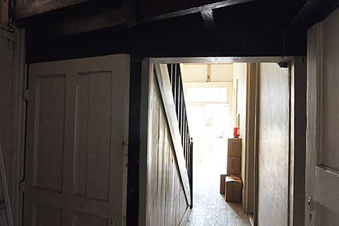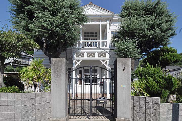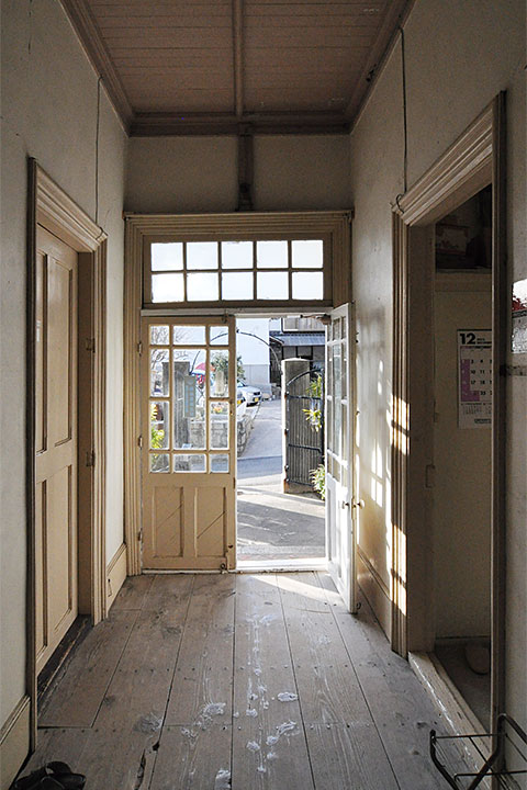 外観は洋館としては一般的な下見板張りのペンキ仕上げ。バルコニー部分の屋根は切妻になっているが、建設当初はアーチだったという。基礎やポーチの床には赤レンガが使われている。また、洋館の後背には畳敷きの武道場と板張りの遊戯室があるが、どうやらトラス架構のようだ。建具を含め保存状態は良好。さらに各所に旧海軍時代のものが残されており、今後の地域づくりへの活用が期待できそうだ。