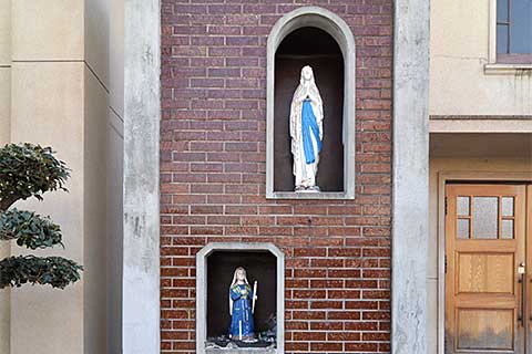 呉の南西側市街地、小高い丘に建つ教会建築。戦後の木造だが建築としての質は高く、じっくりディテールを鑑賞できる、呉では数少ない存在だ。