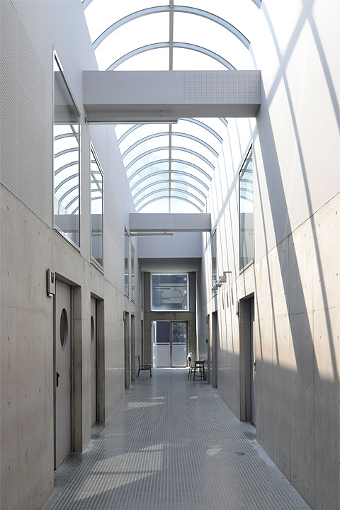 #2::南棟4階の普通教室ゾーン。ここに1~3年の全学生が集中する。ここも外部空間。