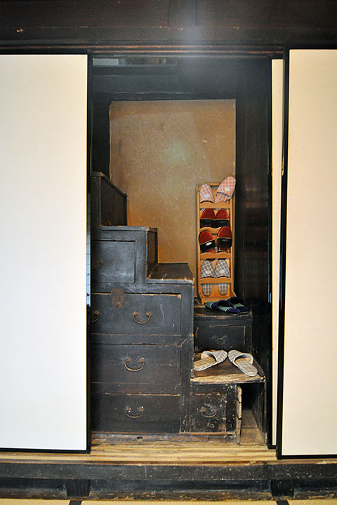 そんな ”おもてなしの町” 三之瀬の歴史を伝えるのが本作であり、前述した御茶屋のうち「下の茶屋」を管理する武士の邸宅として使用されていた。雁木に面して建つ、切妻・平入り・中二階付きの町家である。特筆すべきは、町家なのに侍屋敷らしく門(薬医門)を持つ点であろう。この門は普段は閉じられ、特別な賓客のみくぐることができたという。