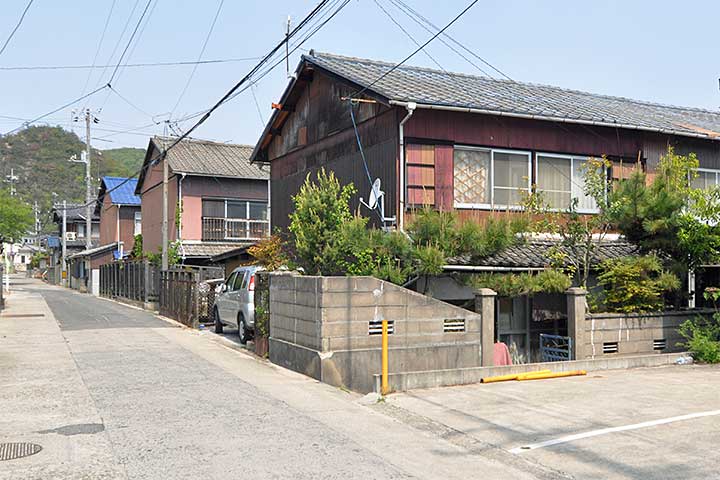 因島(いんのしま)の三庄(みつのしょう)に木造長屋が大量に並ぶゾーンがある。斜面に沿って板状の長屋が並ぶ様子は壮観だ。詳細は調査中だが、近くにある日立造船因島造船所の社宅、または社宅だった建物と思われる。建設年代も不明だが目視では1930~50年代くらいに見える。