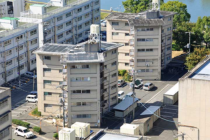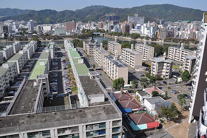 #2:基町高層アパートからの眺望。白は市営でベージュは県営。