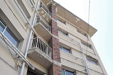 つづいて平面計画について。本作はRC造5階建てで、各階に3戸配されている。階段の形状は、市浦によるプロトタイプがV字を描いているのに対し本作は通常の折り返しとなっている。間取りは3DKで37平米と決して広くはないが、各戸に浴室とトイレがあり、昭和30年代としては恵まれた仕様といえそうだ。