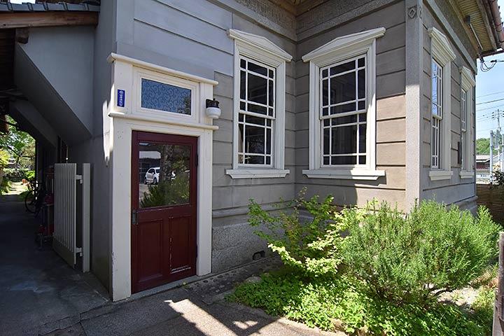 銀山街道の宿場として栄えた御調(みつぎ)の街道筋に残る洋館。医院は(西洋医学自体が舶来モノという意識からか)洋風デザインを採用することが多い。本作の場合、建築時期が古いためか、プリミティブな”洋館らしい”姿をしている。