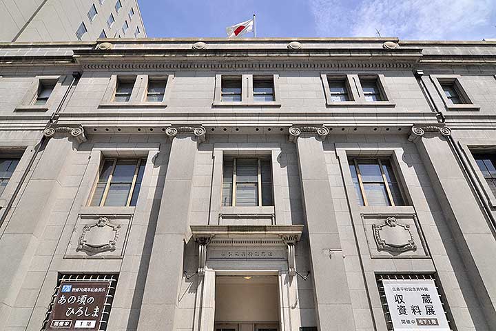 市の中心部に建つかつての銀行。広島の金融街を形成した風格ある様式建築群の唯一の生き残りだ。