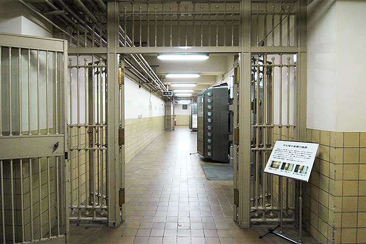 地下の金庫室も見学できる。地下躯体やアメリカ製の金庫扉などは健在だが、被爆時には瞬間的に強烈な爆風が地下にも流れ込み、鉄格子に被害が出たという。