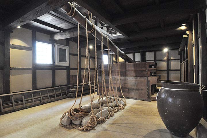 本作でまず注目すべきはその巨大さだ。町家は”うなぎの寝床”状の細長い敷地が通例だが、太田家住宅は街区をほぼ丸ごと占めている。そして主屋に加えて保命酒製造の工場だった酒蔵も良好な状態で現存するのはもはや奇跡と言っていい。