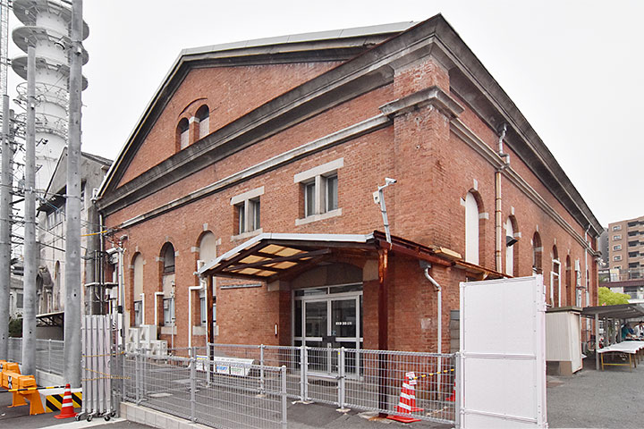 事務所棟については、ざっと見た限りでは比較的往時の外観が残されているようだ。レンガはイギリス積みで、窓まわりには花崗岩、コーニスは人造石らしい。内部にいかにも後付けらしい壁・床が増設されており、往時の様子を伝えるものは見受けられない。