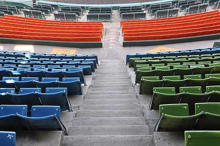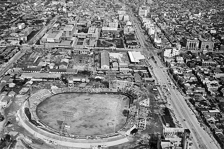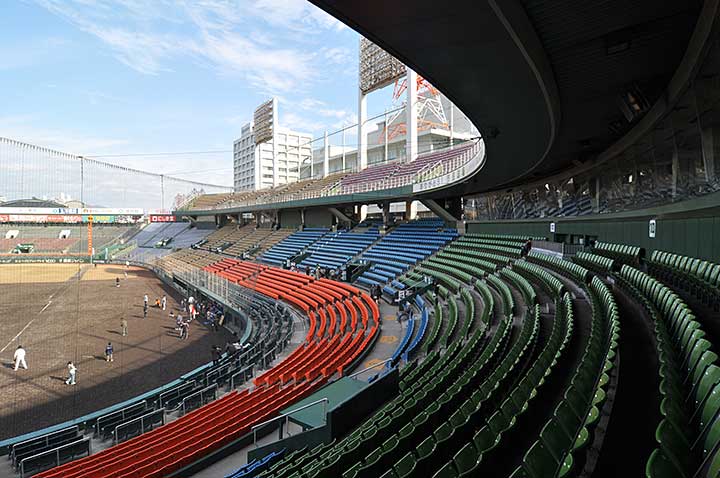 この旧球場については保存改修の意見も根強かったが、スペースに余裕がなくて女性や高齢者への対応は難しかったし、つくりが安普請なのも否めず、保存するほどの建築的な価値があるようには思えなかった。新球場への移転を契機に観客が大幅に増えたことを考えると、やはり新築移転が正解だったように思う。