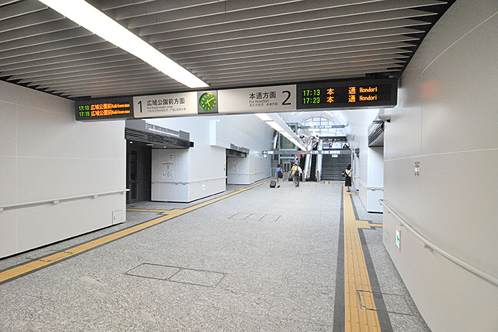 もう一つ、実際に訪問して”おっ”と思ったのは、サイン計画などを含め他の駅との統一感を損ねていないこと。アストラムラインはGKによるトータルデザインが行き届いた、日本で唯一きちんとデザインされた新交通システムであり、そのアイデンティティが保たれたことはアタリマエとはいえ素晴らしいことだ。