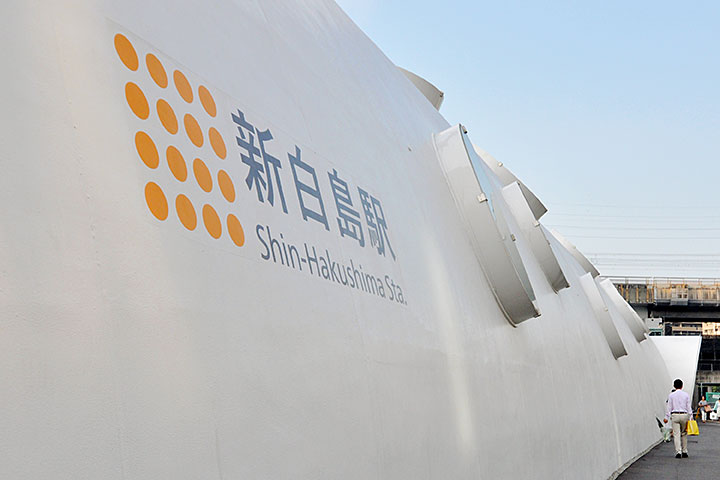 二点目は、本作の対象外であるが重要な「もう一つの新白島駅」であるJR新白島駅だ(写真#11)。これがひどい。工事中の仮設駅かと思ったらこれで完成だという。アストラムラインから乗り換えるとあまりの落差に愕然とする。JRの言い分も重々承知したうえで言いたいのは、ローコストでもデザインのやりようはあるはずで、最初から努力を放棄しているのはいただけない。安全と収益以外の”まちづくり”には協力しないという開き直りが空間にも現れてしまっている。このような”ザ・安普請”で目先の金をケチることが超長期にわたり市民生活の質を損ねることは明らかで、都市インフラを担う企業の姿勢が問われるべきと思う。