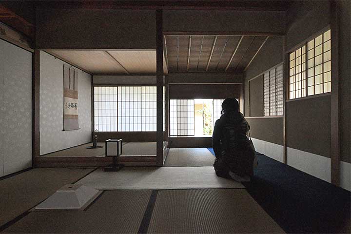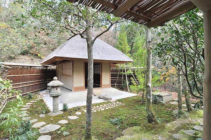 敷地の奥の方に行くと、秀路軒・一来亭・玄庵といった茶室があるが、ここでは秀路軒を紹介する。本作は表千家の残月亭と不審菴を中村昌生の設計により再現したものである。オリジナルは1788年に焼失しており、古図等からできるだけ忠実な再現がなされているという。私自身は茶道は全くの素人だが、シンプルな造形でモダンの香りすら漂わせつつ、緊張感を与えられた空間は、思わず長居したくなる独特の魅力を放っている。