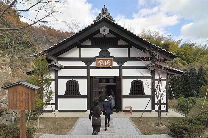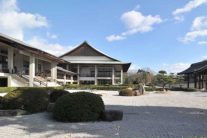 沼隈半島の内陸部に建つ寺院。常石造船の社長を務めた神原秀夫が建立した臨済宗の禅寺である。県内有数の巨大な敷地に多くの堂塔が並び、国際禅道場や茶室を持つ大伽藍となっている。装飾性の高いハデな耕三寺と比べると地味に見えるが、個々の建築の質は高く、じっくりと鑑賞したくなる作品が揃っている。