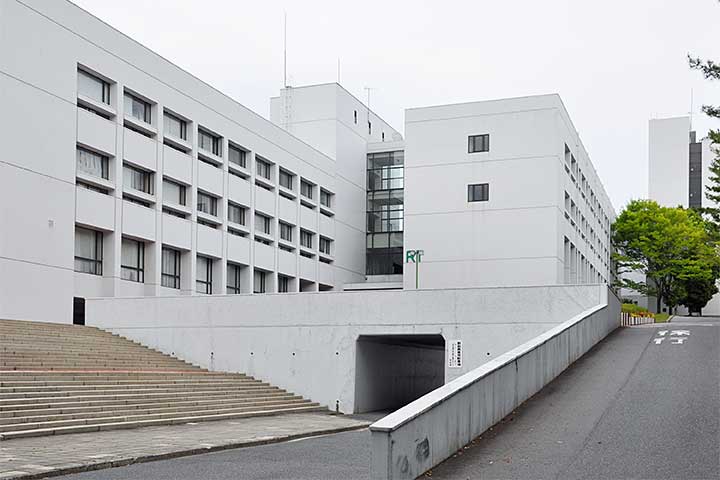 広域公園と正対する丘陵地に位置する大学のキャンパス。数々のモダニズム建築がある広島の中でも、そこそこ良質なものがこれほど密集して並ぶ場所は他にない。 外観は平滑でシンプルであるが、合理的な平面計画から生じるモダニズム建築本来の美が表現されている。スチールサッシの風合いもよい。建築の隙間や、ちょっとした高低差の処理などもデザインの一部となっている。
