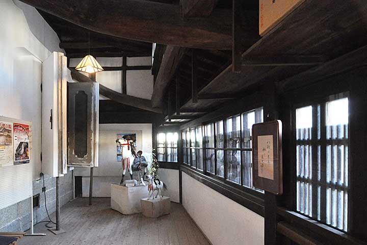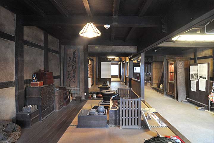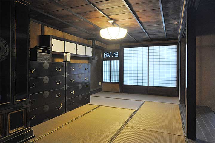 本作の面白さは、土蔵が主屋を突き破るように建っていることだ。外観を見ても明らかで、平入りの建物を突き刺すように土蔵の顔が見えている。この土蔵(内蔵)は最初からここにあったのではなく、江戸時代末期の米蔵を明治期に移築したものという。移動させたりつないだり、木造伝統家屋は実に自在に姿を変えていく。