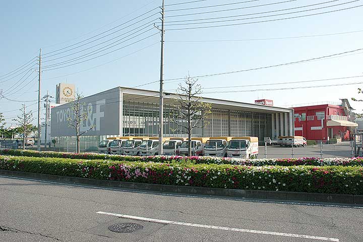 広島の西部に広がる埋め立て地に建つ、フォークリフト会社のオフィス兼整備工場。