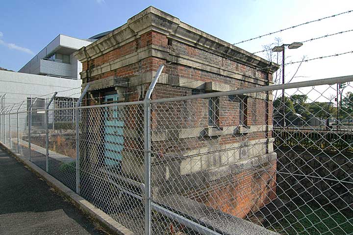 牛田浄水場の片隅に残る旧ポンプ室。ポンプの役目は緩速ろ過池でろ過された水を高台の配水池に上げることであり、本作も配水池がある山の麓に位置している。3号配水池ともども大正時代の第二次拡張期工事で建設された。