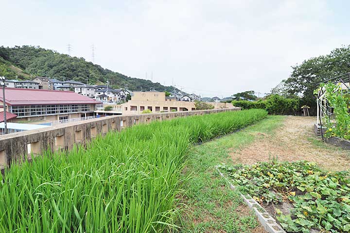 セットバックしていく屋上を緑化して上階の教室の専用庭としたり、3階の屋上に菜園や水田を設けるなど、常に自然や四季の移ろいを感じさせる工夫がなされている(*1)。窓やドアなどの建具、机などの家具はほぼ全て木製で統一され、子供が触れるところは自然素材となるよう配慮されている。