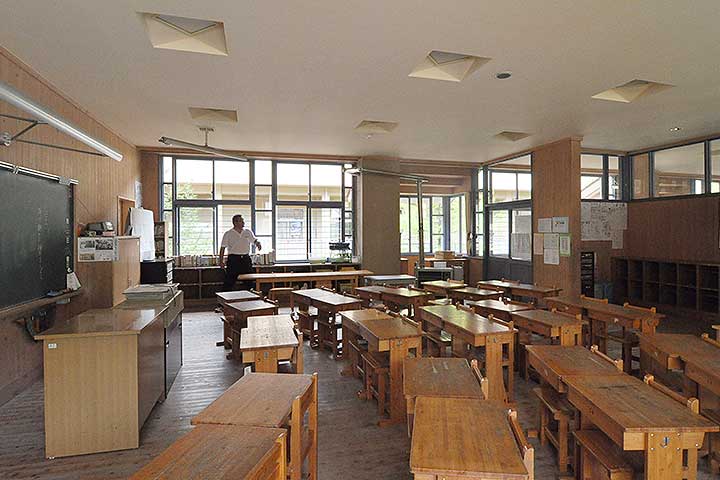 ただし、教室の窓が北側となり南面採光ができないため、室内は普通の校舎よりも暗めである。