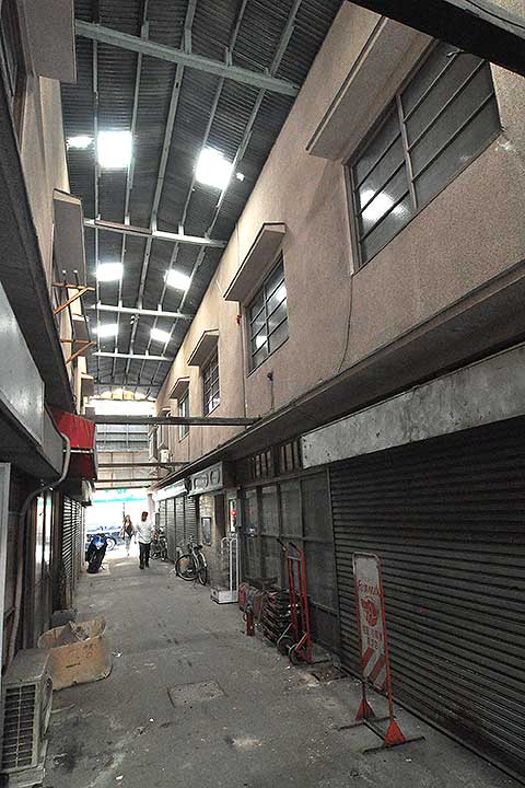 戦後に数多く建てられたアーケード型共同化商店街(勝手に命名)の一つ。日本的なパサージュと言えなくもない。区画整理された街区に細長い二階建てを二棟つくり、間に屋根を渡している。内部構造は不明だが、おそらくメゾネットの長屋であろう。訪問時には既に多くの店舗は閉鎖されていた。文化財と位置付けることは難しいが歴史を刻む中で趣深い空間となっている、こういう物件こそ、リノベーションで蘇らせる社会的意義が大きいだけに、解体は残念でならない。