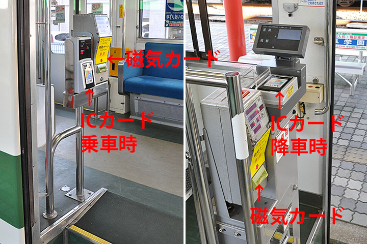 ■一日乗車券で乗る場合: 乗車時と降車時にカードを専用リーダーに通します。